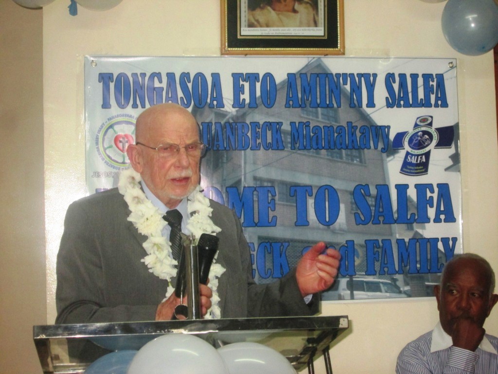 Lanonana ara-panahy tsotsotra sy mendrika no nandraisan’ny mpiara-miasa rehetra SALFA an’i Dr Quanbeck sy ny zanaka aman-jafiny ny zoma 6 aprily 2018. Taranaka fahatelo misionera niasa teto Madagasikara izy, ary ny raibeny avy amin’ny reniny dia Pastora milevina any Manasoa-Fanjahira Bezaha (Toliara). Tsy nahatana ranomaso ny lehilahy raha nampahatsiahy izany, ary tsaroany ireo anaram-bosotra niantsoana azy hoe Dokotera Marivoranomaso, sy ny hoe Dokotera Lesola. Nahatsikaiky ny filazany fa tsy mitsahatra mitombo ny fahasolany izy misotroronono sy mihoatra ny 80 taona izao.
