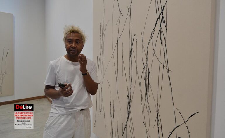 Raha ny fampirantiana « Le crépuscule des promesses éternelles » no resahana dia manambatra ireo marika ahafantarana azy ara-javakanto sy ireo famantarana hita maso ny asa vokariny ny mpanankanto. Tsy ao anatin’ireo angolan’ireo teny ihany akory no anovozany ireo hakanto, fa ao anatin’ireo herin’ny singa ampiasainy ihany koa, toy ny lamba, ny taratasy ary ny vy. “Ny somanjasanja tiany resahina eto dia hevitra maneho ireo dingana voalohany, ireo teny mialoha, ireo santatry ny ho ravaka voalohany. Andiam-potoana tsotra, izay hivezivezen’ny fanahy, ary itroaran’ny ambiroa, mialohan’ny hirobohana ao anatin’ny fahababoam-po. Na vao maraina mangiran-dratsy na efa mazava ny andro, dia efa misy ireo ambangovangon-tsoratra azo handrafetana ny tantara. Toa miendrika tononkalo ny zava-misy, kanefa ny fihetsika efa tena vonon-kiatrika.