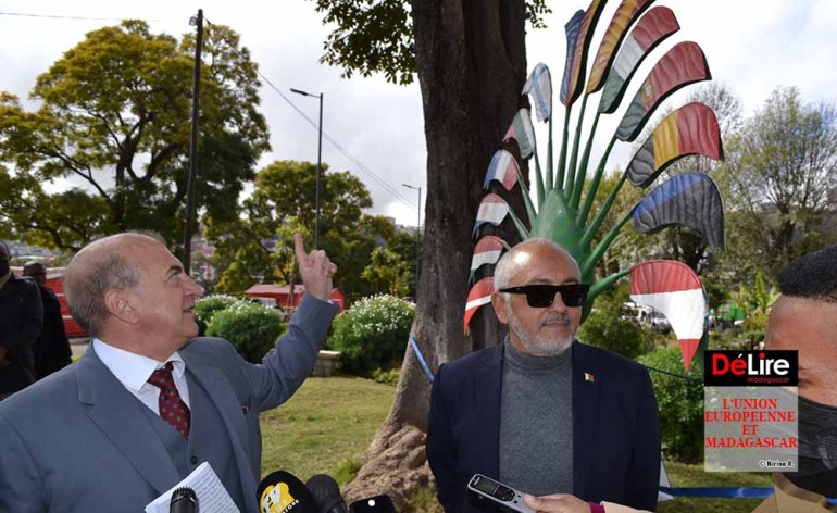 Dans le cadre des célébrations de la semaine de l’Europe 2022 qui s’est tenue à Antananarivo du 2 au 9 mai 2022, et plus spécifiquement à l’occasion de la commémoration de la Déclaration Schuman du 9 mai 1950, acte fondateur de la création des institutions européennes célébré chaque année durant la « Journée de l’Europe », la Délégation de l’Union européenne (UE) à Madagascar a souhaité que soit réalisé un film de 3 minutes pour rappeler brièvement les principales étapes de la construction de l’Europe, depuis ses débuts au lendemain de la seconde guerre mondiale jusqu’à nos jours, et rendre hommage au partenariat de longue date entre l’UE et Madagascar. Le fil conducteur de ce film est la réalisation par le célèbre ferronnier d’art, Dieudonné Razafinjatovo, d’un ravinala en fer forgé. Le maniement du fer et du charbon (via les flammes des fers à souder) est un clin d’œil à la décision prise en 1951 par 6 pays européens de mettre en commun leurs productions de charbon et d’acier à travers la création de la Communauté européenne du Charbon et de l’Acier (CECA). Ce qui allait devenir l’Union européenne était né ! Le film, intitulé « Un ravinala sous les étoiles », est disponible en accès libre sur YouTube. « Dans le cadre de la célébration de la journée de l’Europe, 9 mai passé, on avait demandé au sculpteur célèbre Dieudonné de faire une oeuvre qui pourrait vraiment prèsenter ce qui unisse l’Europe et Madagascar. Je crois qu’il a eu cette idée géniale de faire ravinala, la plante la plus symbolique de votre pays et mettre de deux côtés les drapeaux des 27 pays membres de l’Union européenne. Ces drapeaux représentent les drapeaux des 27 pays qui ont eu un passé complexe et qui ont été souvent ennemie auparavant. Il y a eu des guerres mais maintenant ils travaillent tous ensemble dans l’Union européenne.On peut se réconcilier, vivre ensemble même si on était des ennemis dans le passé », affirme l’ambassadeur de l’UE à Madagascar en rappelant que l’UE est un grand partenaire de Madagascar en matière de développement. Actuellement, le jardin d’Anosy est ouvert au public tous les weekends.