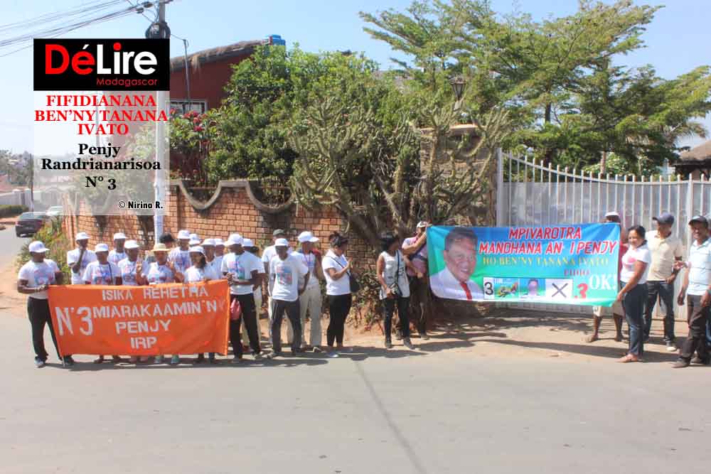 Ho atao manezinezina ny fandresena. Taorian’ny fotoam-pivavahana nanombohana ny fampielezan-kevitra dia nanao diabe nitety ny tanàna ny kandida laharana faha-3 ao amin’ny kaominina Ivato sy ny mpanohana azy androany 5 novambra 2019. Nambaran’ny kandida ho ben’ny tanàna natolotry ny antoko TIM (Tiko i Madagasikara), Randrianarisoa Penjy fa hanao ny ezaka rehetra hitantanana indray ny kaominina hanohizana ny zava-bita. “Tsy takona hafenina zava-bitanay teto amin’ny kaominina Ivato na iza hinia hanakona izany. Fantatry ny olona ny fampandrosoana nataon’izany Penjy Randrianarisoa sy ny ekipany izany. Azo laizaina fa isan’ny voalohany ny kaominina Ivato raha resaka foto-drafitr’asa. Ny mason’ny vahoakan’Ivato tsy jamba fa mahiratra ary ho atao mamirapiratra hatrany ny asa izay atao, ho an’ny efa-taona manaraka”, hoy Randrianarisoa Penjy. Manentana ny mponina rehetra eto amin’ny kaominina Ivato ny tenany handrotsaka ny laharana faha-3 amin’ny fifidianana ben’ny tanana, atao ny 27 novambra 2019. Manana lisitra mpanolontsaina ihany koa ity kandida: lisitra Mpanolontsaina Alefa Penjy (FAPI), laharana faha-3 sy lisitra mpanolontsaina KMP, laharana faha-5.